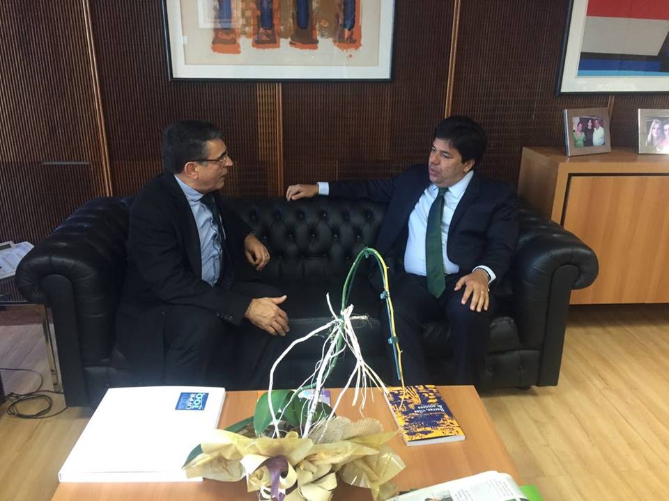 O prefeito está em Brasília/DF, e a viagem dele está relacionada a parte administrativa do município, onde o mesmo foi em busca de novos recursos para que obras já iniciadas sejam concluídas e novos projetos sejam iniciados, como mostra a foto em baixo, quando o Dr. Edson conversou com o Ministro de Educação, Mendonça Filho.