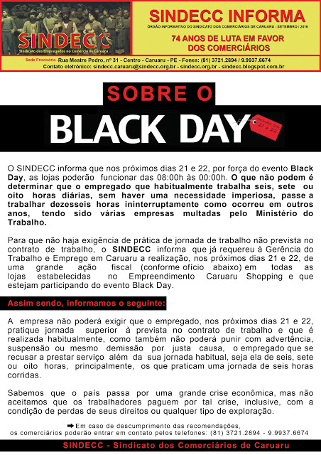 Empregados não podem trabalhar mais que 8h no Black Day 21 de setembro de 2016 0 Por blogem Agenda dos candidatos a Prefeito de Caruaru nesta quarta (21) Equipe das Rádios Liberdade define detalhes para o debate com candidatos a Prefeito de Caruaru