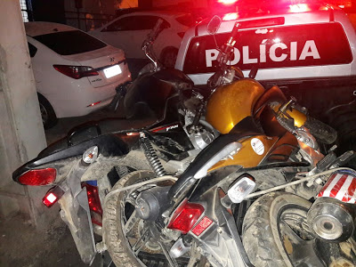 As motos e o restante do material foram encontrados em um terreno baldio, onde o policiamento encontrou todo o material, 04 motocicletas com restrição de roubo ou furto, uma moto com lacre rompido, além do material já relatado, porém nenhum individuo foi encontrado. Diante da situação o referido material foi entregue a DP, para que seja instaurada investigação e sejam adotadas as medidas cabíveis.