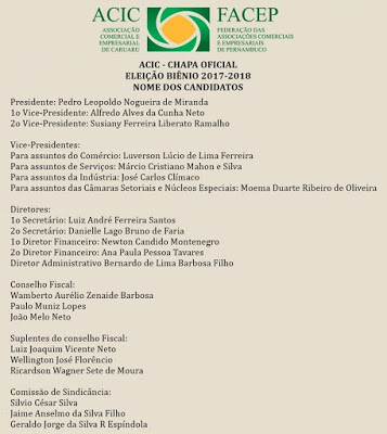 O Blog do Edvaldo Magalhães deseja boa sorte e bom trabalho não só ao presidente eleito, Pedro Miranda, como também a toda nova diretoria da Acic.