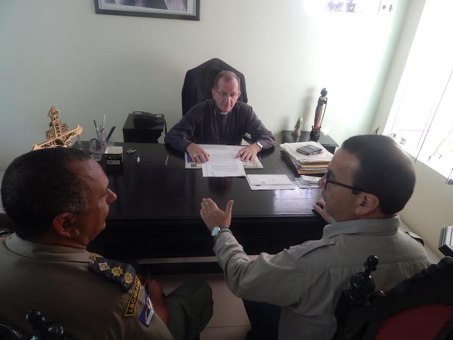 Na manhã dessa quarta-feira, (26), o Bispo Diocesano de Caruaru, Dom Bernardino Marchió assinou um documento cedendo um terreno, nas proximidades do Monte Bom Jesus, para a Polícia Militar de Pernambuco. O local pertencente a Diocese de Caruaru, será cedido para a construção de um Posto de Policiamento Ostensivo, que deverá auxiliar na pacificação do local.