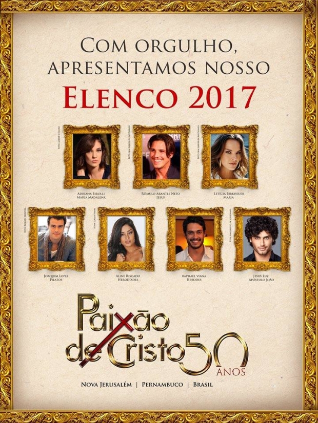 A Sociedade Teatral de Fazenda Nova divulgou, na manhã desta quinta-feira (24), o elenco principal da Paixão de Cristo de Nova Jerusalém 2017. O ator Rômulo Arantes Neto fará o papel de Jesus na temporada será realizada no período de 8 a 15 de abril. Especulava-se que o Cristo seria o ator Reynaldo Gianecchini.
