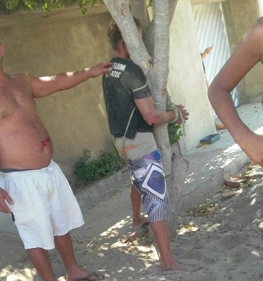 pelos populares que o amarraram em um poste e depois numa árvore, o espancaram,