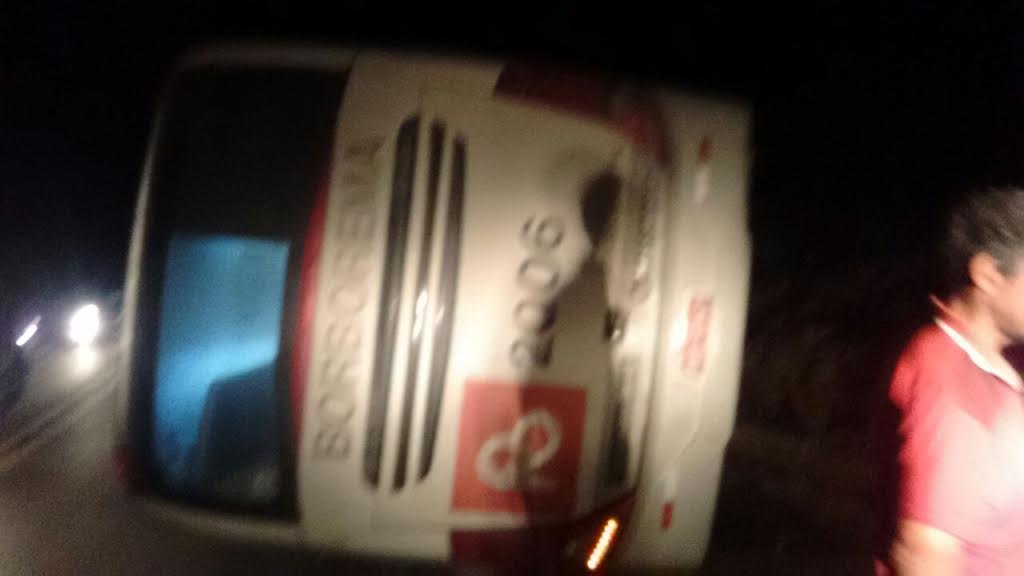 Ônibus que fazia a linha Caruaru/Bonito tombou na BR-104 no dia do Natal