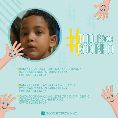 O plano de saúde de Roginho não cobre esse tipo de procedimento, que terá de ser particular. Agora, a família e amigos estão se mobilizando para conseguir juntar o dinheiro da cirurgia e das despesas: R$ 95 mil reais.