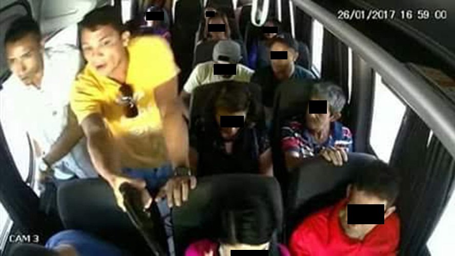 Nas imagens, divulgadas nesse sábado (28), é possível observar que dois homens se passam por passageiros durante a viagem para não chamar a atenção, até que um deles, sentado na poltrona da frente, mostra uma arma e começa a roubar as carteiras e os telefones celulares dos ocupantes do veículo.
