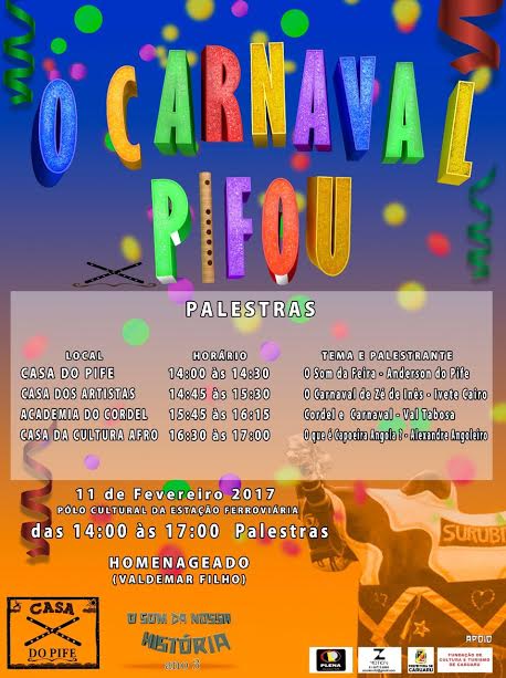 A Casa do Pife vai realizar no próximo sábado (11), a 3ª edição do “Carnaval Pifou”. O objetivo é evidenciar a essência da folia de momo num passado recente da cidade. O homenageado desse ano é o carnavalesco Valdemar Filho.