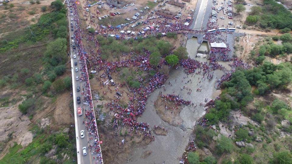 Na tarde deste domingo (19), em Monteiro, na Paraíba, milhares de nordestinos de diversas regiões acompanharam a visita dos ex-presidentes Lula e Dilma para comemorar a chegada da água no Eixo Leste da Transposição do Rio São Francisco, com 217 km de extensão, maior obra hídrica da história do Brasil. Uma carreata percorreu 170 km entre Campina Grande e Monteiro, local escolhido pelos ex-presidentes para a visita.