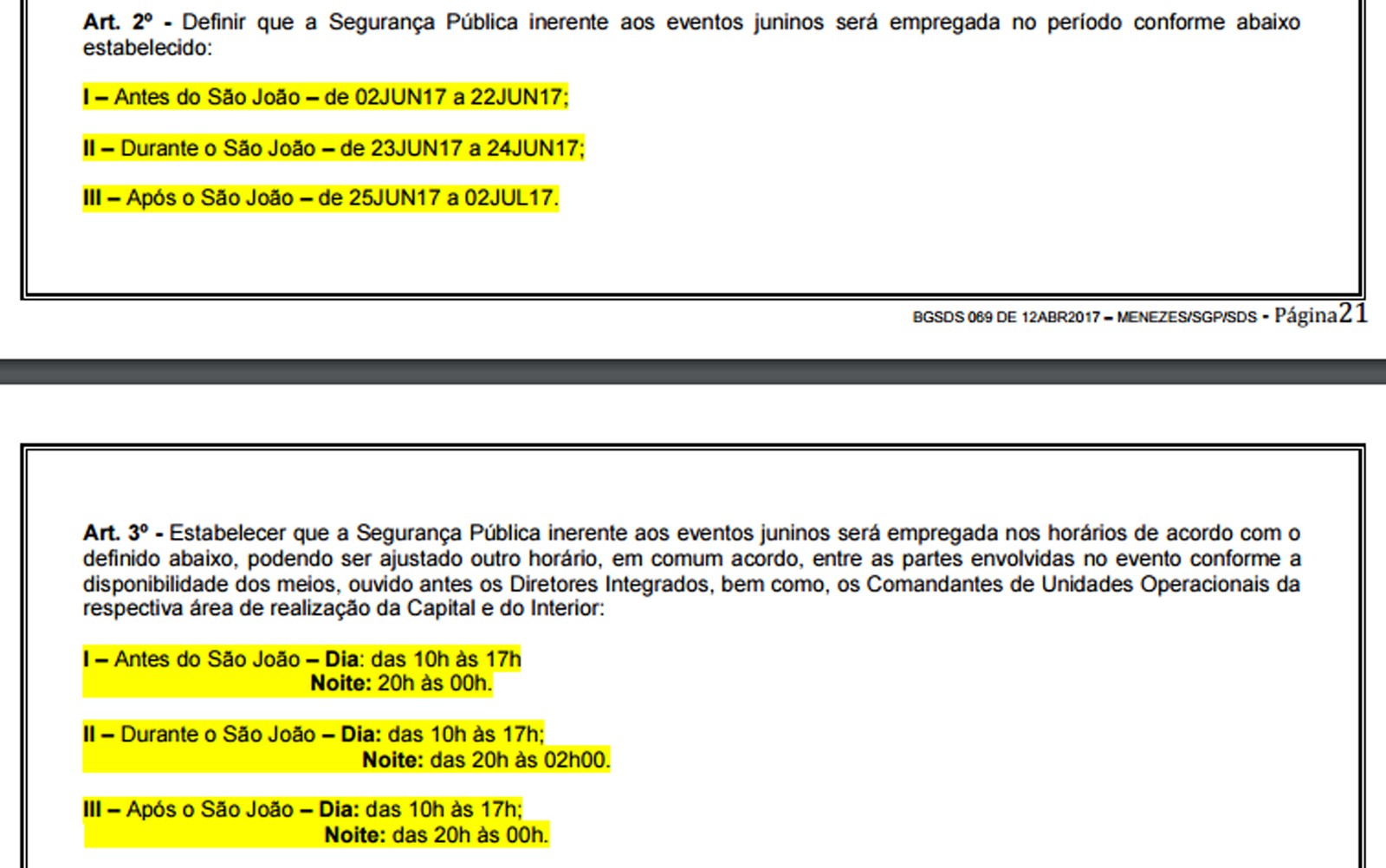 meia-noite, e nos dias 23 e 24 de junho, o efetivo da PMPE será empregado até