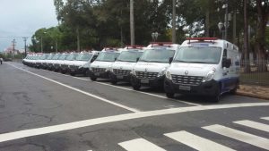 O governador Paulo Câmara entregou 17 novas ambulâncias, que vão atender 15 unidades da Região Metropolitana do Recife (RMR) e do Interior do Estado. Os veículos, equipados com UTI, integram o plano de renovação da frota da Secretaria Estadual de Saúde, que, desde o ano passado, já substituiu 157 veículos da rede. A renovação contempla Unidades Móveis de Suporte Básico (USB) e Unidades Móveis de Suporte Avançado (USA).