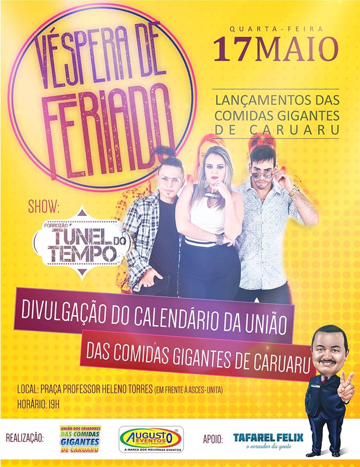 A União das Comidas Gigantes lança a partir das 19h30 desta quarta-feira (17), o calendário das festas que serão realizadas durante o período junino em Caruaru. O evento será realizado na Praça da Asces-Unita, na Portugal. O presidente da União, Augusto Eventos, convida a todos.