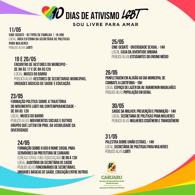 programação dos 10 Dias de Ativismo LGBT do município e tem como intuito o de
