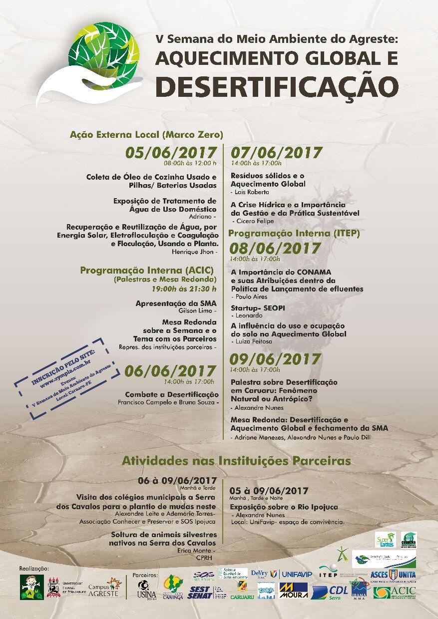 edição o tema: Aquecimento Global e Desertificação. A programação contempla palestras e mesas redondas, além de