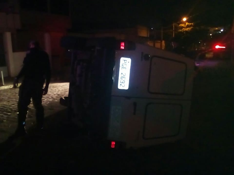 Bandidos tentam atropelar policiais, capotam carro e trocam tiros com a PM em Caruaru