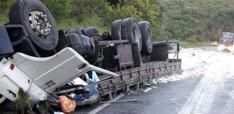 Esta última foto é de outro acidente, que ocorreu também nesta segunda-feira (03), agora no Km 65 da BR-232, na Serra das Russas, em Pombos, sentido Caruaru/Recife, quando o caminhão tombou, interditando a rodovia. Segundo informações de populares, duas pessoas morreram.