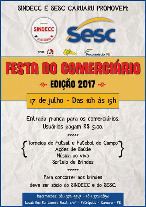 Comerciário neste ano de 2017, acontecerá na terceira segunda-feira de julho,