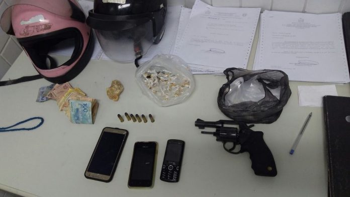 Trio detido com moto roubada, arma de fogo e 84 pedras de crack em Caruaru
