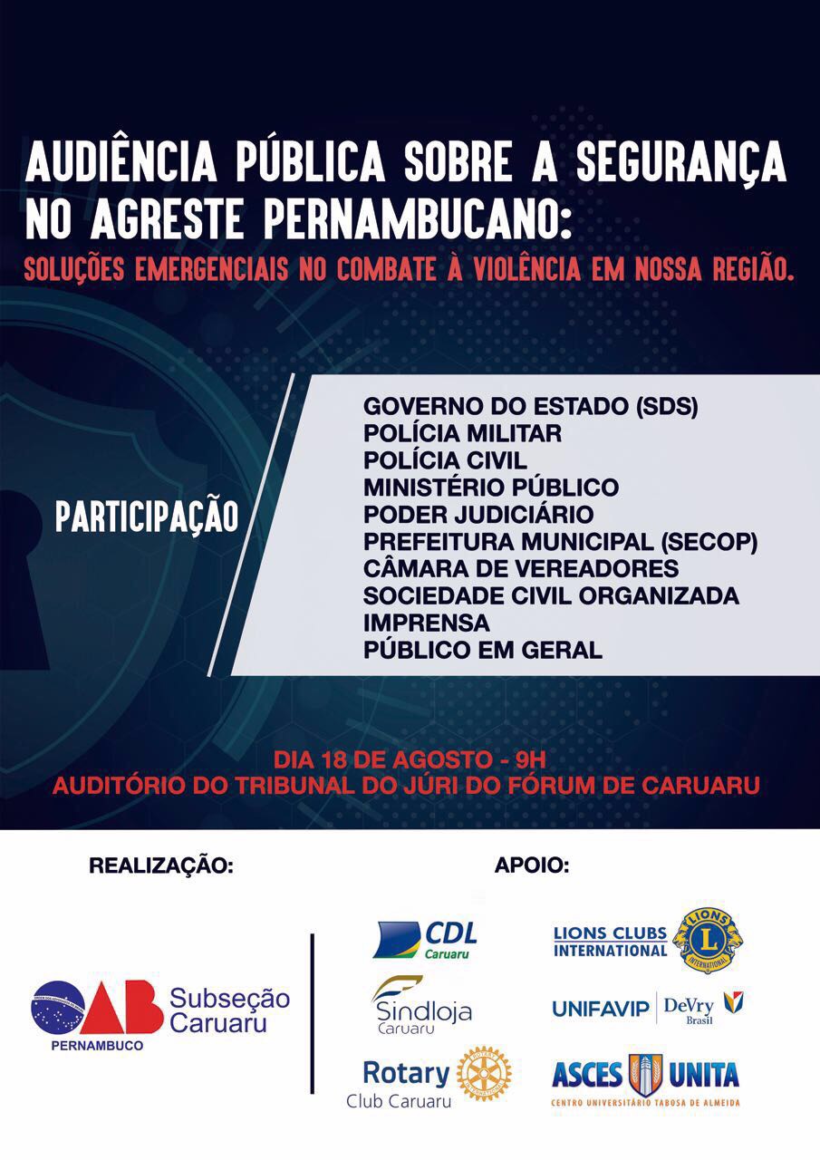 OAB/Caruaru promove audiência pública para debater segurança no Agreste pernambucano