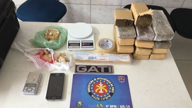 Além da droga, os policiais apreenderam uma balança de precisão. Os suspeitos foram levados para a Delegacia de Plantão e serão encaminhados para audiência de custódia.