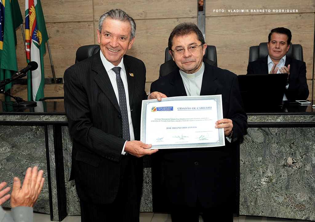 Em Sessão Solene, na noite da última segunda-feira (25), na Câmara de Vereadores de Caruaru, o Monsenhor José Heleno Santos, que comanda a Paróquia Nossa Senhora das Dores (Catedral), recebeu o Título de Cidadão Caruaruense, propositura do presidente da Casa, Lula Torres (PDT), que teve as presenças dos vereadores Fagner Fernandes e Heleno Oscar. A narração da biografia do Monsenhor, foi do ex-vereador Jaelcio Tenório.