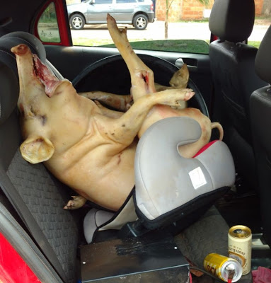 Motorista embriagado é preso transportando porco em cadeirinha de bebê