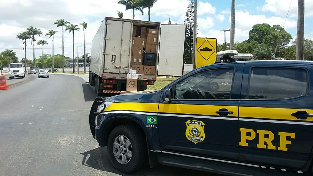 A Polícia Rodoviária Federal (PRF) apreendeu um caminhão carregado com maços de cigarro contrabandeado na BR-423, em Garanhuns. A mercadoria seria entregue em Natal, Rio Grande do Norte.