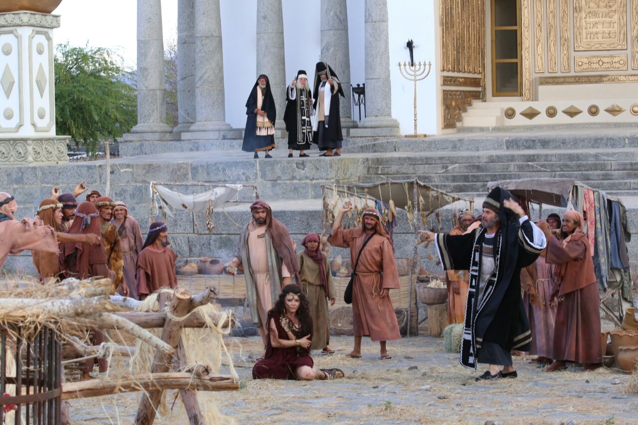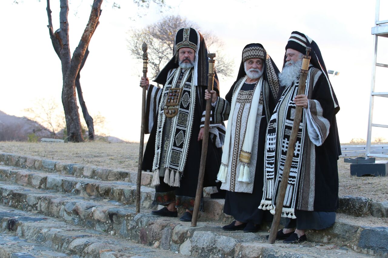 Imagens do elenco da Paixão de Cristo 2018 gravando filmes de divulgação do espetáculo