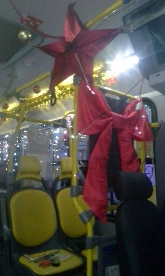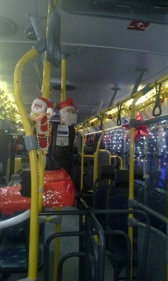 Durante os próximos dias, o ônibus seguirá circulando com a decoração natalina nas suas linhas regulares, com pagamento normal da tarifa.