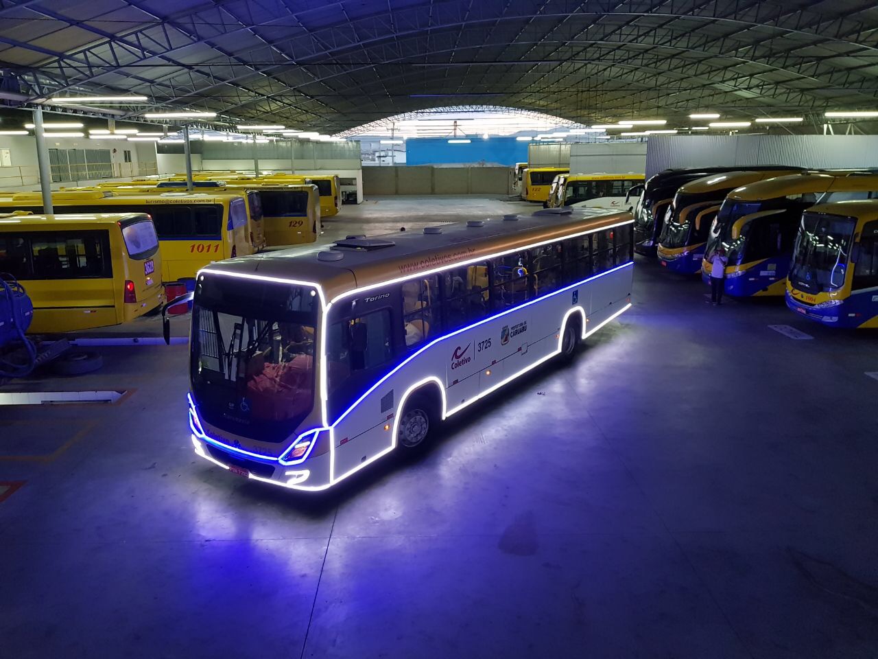 A decoração foi feita com iluminação especial em LED para não afetar o sistema elétrico do ônibus. O ônibus atende todas as linhas de Caruaru.