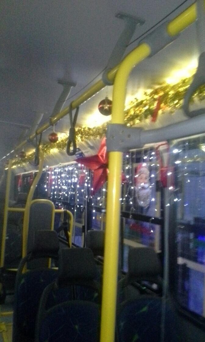 É que um dos ônibus da empresa Coletivo está circulando pelas ruas da cidade em clima natalino. Não há cobrança adicional por esse serviço. O objetivo é proporcionar aos usuários um despertar sobre o verdadeiro sentido do Natal e proporcionar uma viagem mais alegre e divertida.