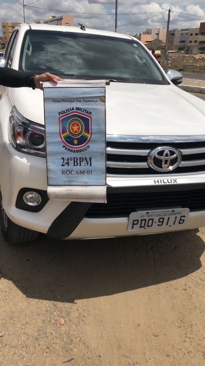 Neste sábado (27), dois indivíduos em uma XRE vermelha, placa não anotada, surpreenderam a vítima e anunciaram o assalto, levando sua Hilux junto com seus documentos, policiais saíram em diligências, quando às margens da PE160, avistaram o referido veículo onde os acisados abandonaram o mesmo, E seguiram na XRE 300 vermelha, tomando destino ignorado, diante dos fatos o efetivo, recuperou o veículo, tendo localizado o proprietário, que chegou no local logo em seguida. Os acusados levaram a chave do veículo e o proprietário acionou um chaveiro para ligar o carro, depois foi para a delegacia, onde foi feita a devolução do referido veículo ao seu proprietário.