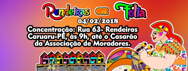 Neste domingo (04), acontece o desfile do Bloco Carnavalesco “Rendeiras em Folia”, a partir das 9h da manhã e terá encerramento ao meio dia, saindo da rua 63 e indo para a praça principal do bairro Rendeiras, ao lado do casarão, onde é localizada a Associação dos Moradores do bairro. O bloco tem organização de Alexandre Pirulito.