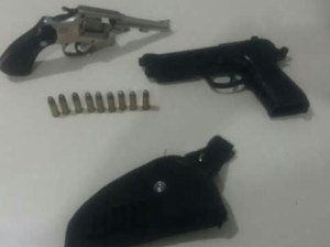 Os policiais apreenderam com os suspeitos dois revólveres, sendo um do vigilante, e um simulacro de pistola, além de munições. As armas e as pessoas detidas foram apresentadas na Delegacia de Plantão. Um dos detidos já estudou na escola.