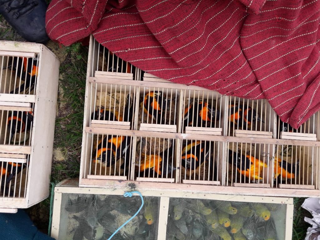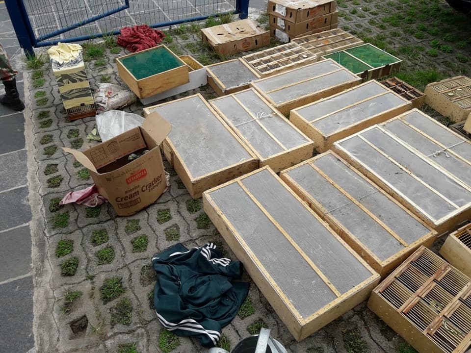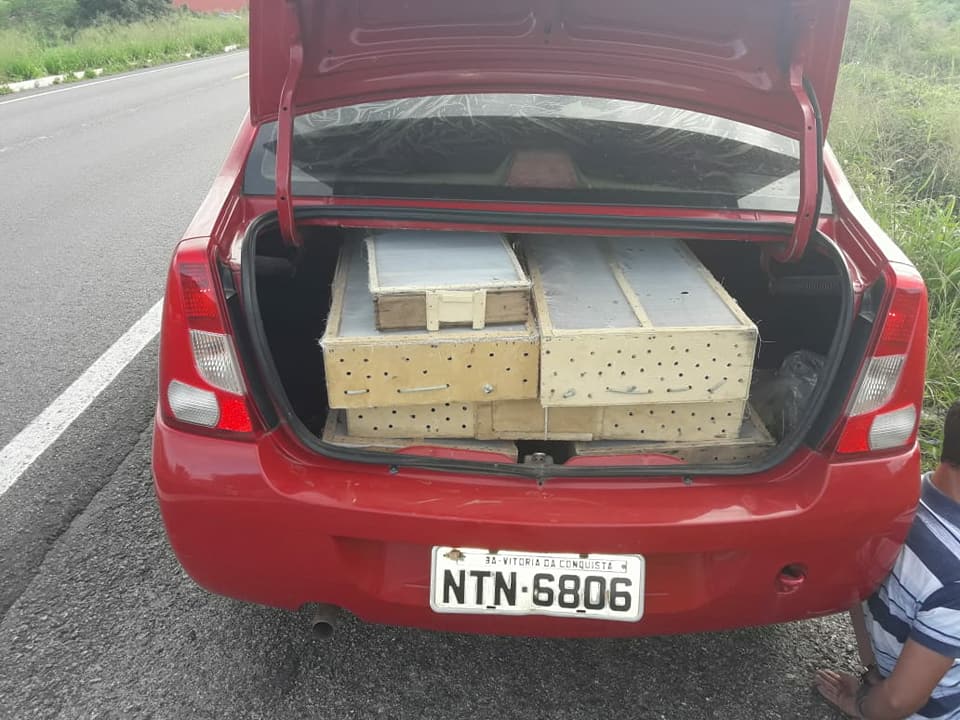 No momento da abordagem, foi verificado que todas as caixas estavam com animais silvestres (pássaros), sem a autorização do órgão competente, bem como, os animais estavam confinados em locais completamente inadequados, alguns já estavam mortos e outros tantos debilitados, sem água e comida.