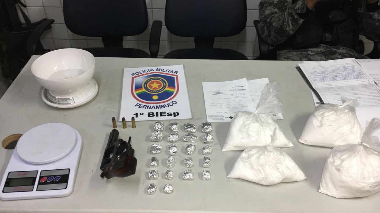 em flagrante pelos crimes de tráfico e posse ilegal de arma de fogo.
