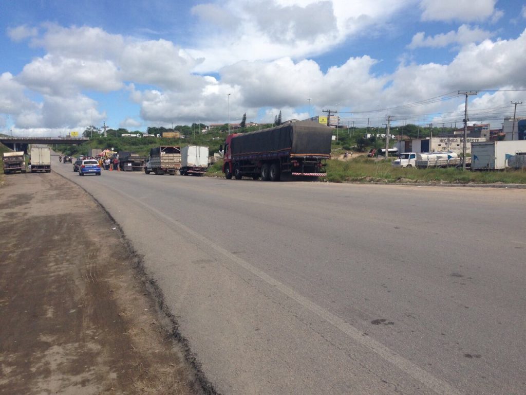 Caminhoneiros saem da pista de rolamento das BRs 104 e 232 em Caruaru a pedido da PRF