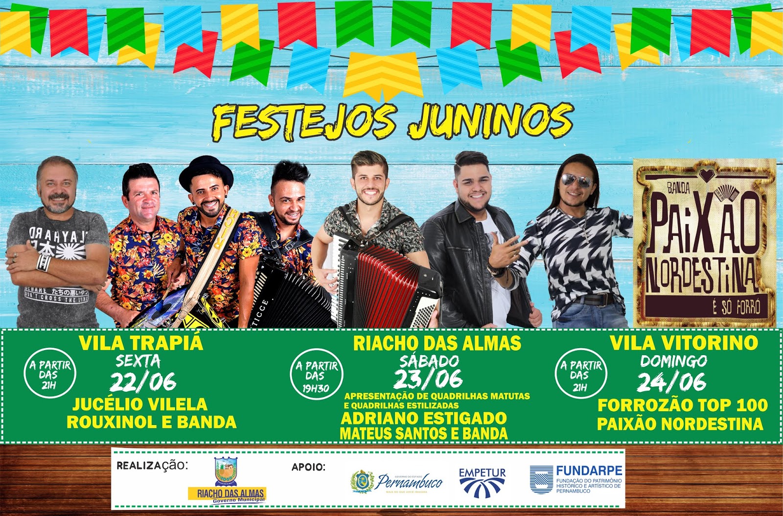 A Prefeitura de Riacho das Almas segue divulgando a programação dos festejos juninos do município. E no fim de semana dedicado ao principal Santo celebrado no período, uma série de eventos devem ser realizados na cidade e na zona rural.