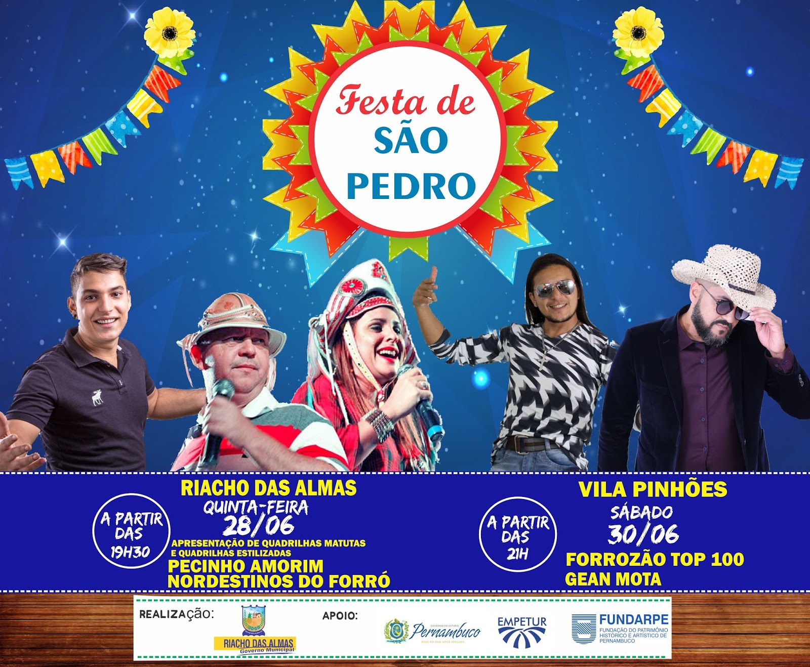 As comemorações juninas de Riacho das Almas seguem movimentando todo o município. Após a passagem do São João, chegou a vez de comemorar São Pedro. E para celebrar o último Santo do período, a Prefeitura de Riacho das Almas prepara duas festas: uma na cidade e outra na Vila de Pinhões.
