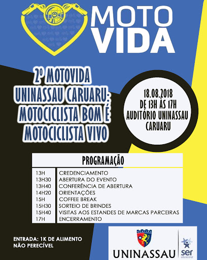 A Faculdade UNINASSAU Caruaru e o Observatório de Trânsito de Caruaru realizam no próximo sábado (18), a partir das 13h, a segunda edição do evento MotoVida, que tem como objetivo estimular o motociclista para que seja um agente na diminuição de acidentes na estrada. A entrada é gratuita e o evento será realizado no auditório e no pátio da Instituição de Ensino Superior (IES).