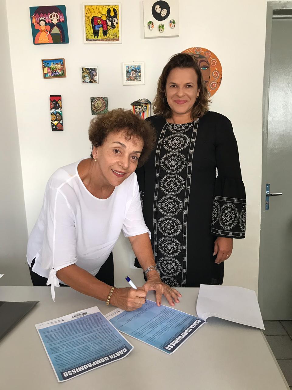 Ao assinar o documento, a candidata recebeu do Sindsemppe um selo de “Político comprometido com a Democracia no Ministério Público”.