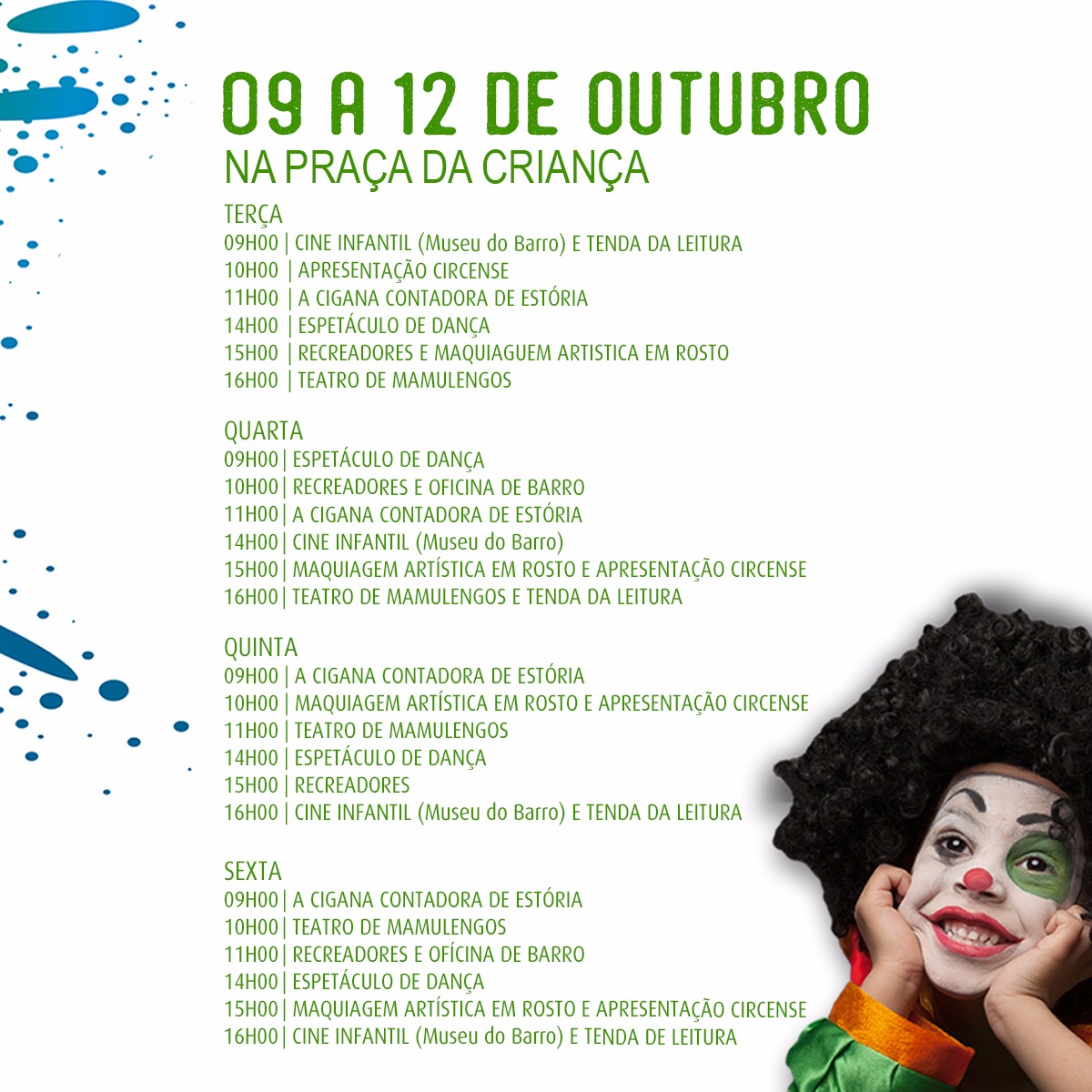 A Prefeitura de  Caruaru, através da Fundação de Cultura e Turismo, fez uma vasta programação para a criançada da Capital do Agreste. O evento deste ano terá o tema “Criança é para ser criança, criança é para ser feliz” e  acontecerá na Praça da Criança, de 09 a 12 de outubro. Uma mostra itinerante de teatro também passará pelos bairros da cidade e da zona rural.