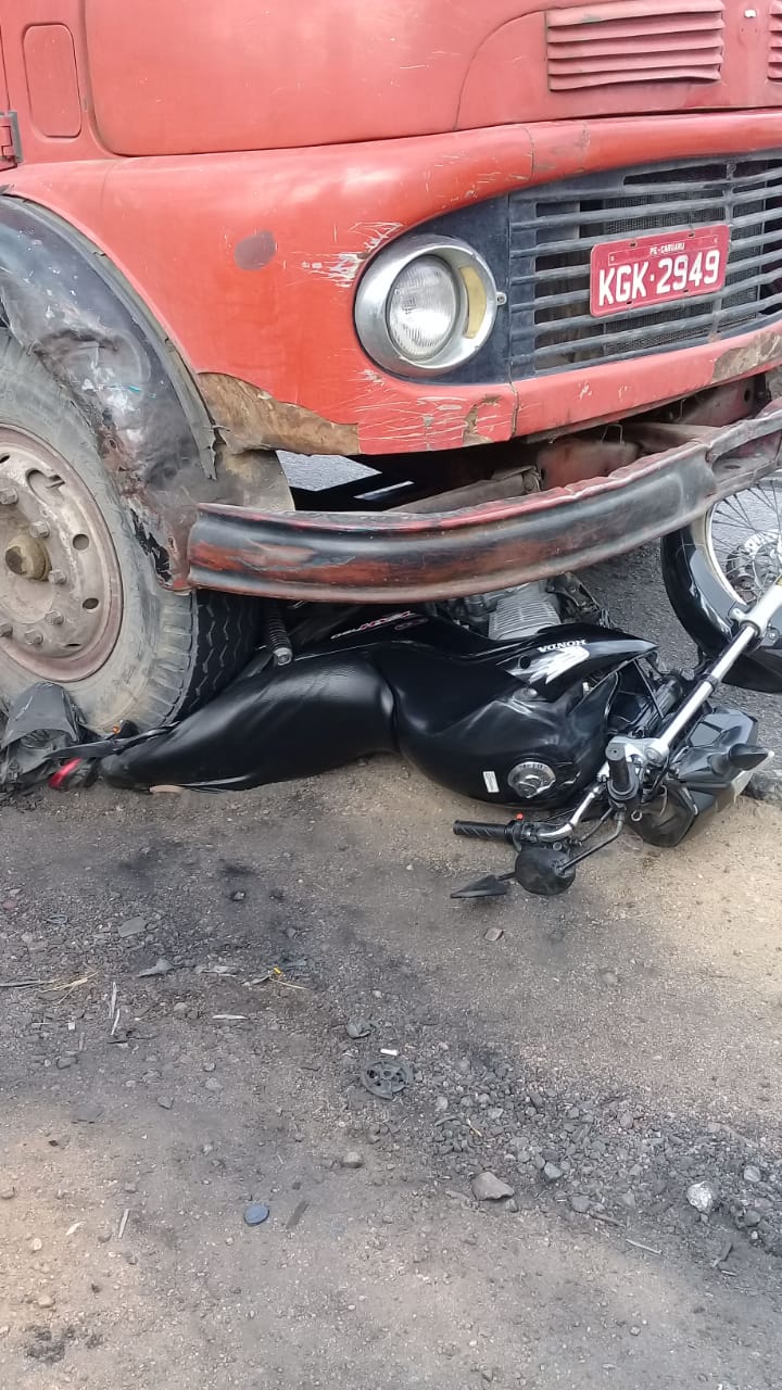Um acidente envolvendo um caminhão e uma motocicleta, ocorreu na manhã desta segunda-feira (29), nas proximidades do Terminal Rodoviário de Caruaru,  na BR-104. Segundo informações, o motorista do caminhão perdeu o controle do veiculo, vindo a bater e arrastar a motocicleta, que era conduzida por Jose Edson, de 32 anos de idade, residente na cidade de Altinho, Agreste de Pernambuco. A vítima teve escoriações e passa por cirurgia em um dos pes, neste momento no Hospital Regional do Agreste.