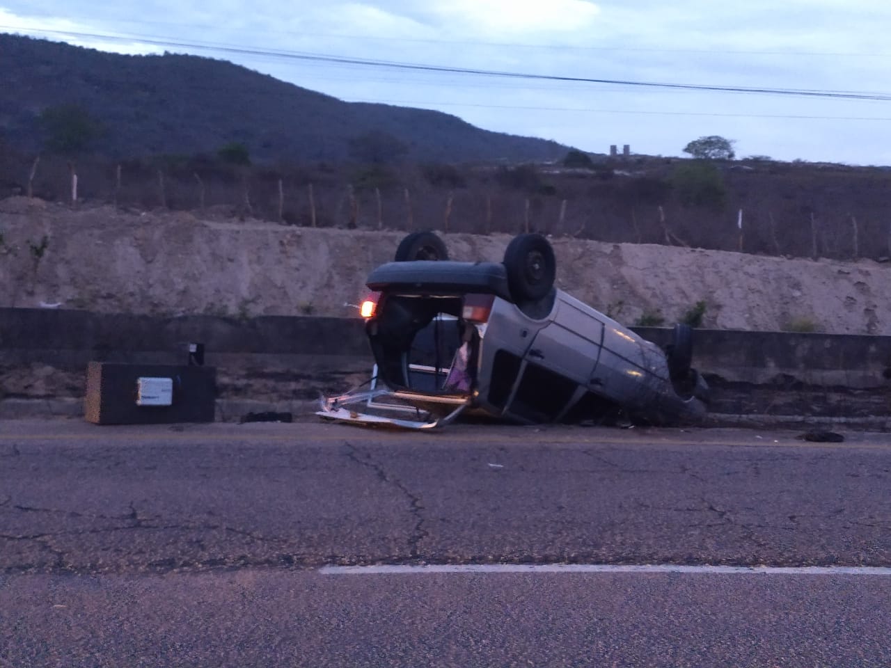 Um Fiat Uno capotou por volta das 16h30 deste domingo (25), na BR-232, nas proximidades do sítio Vasco, sentido Capital/Interior. O motorista Damião Marcionilo da Silva, 37 anos, residente no bairro São João da Escócia, voltava do aniversário da genitora, no sítio Boas Novas, município de Bezerros, no veículo emprestado por um amigo, quando aconteceu o acidente.