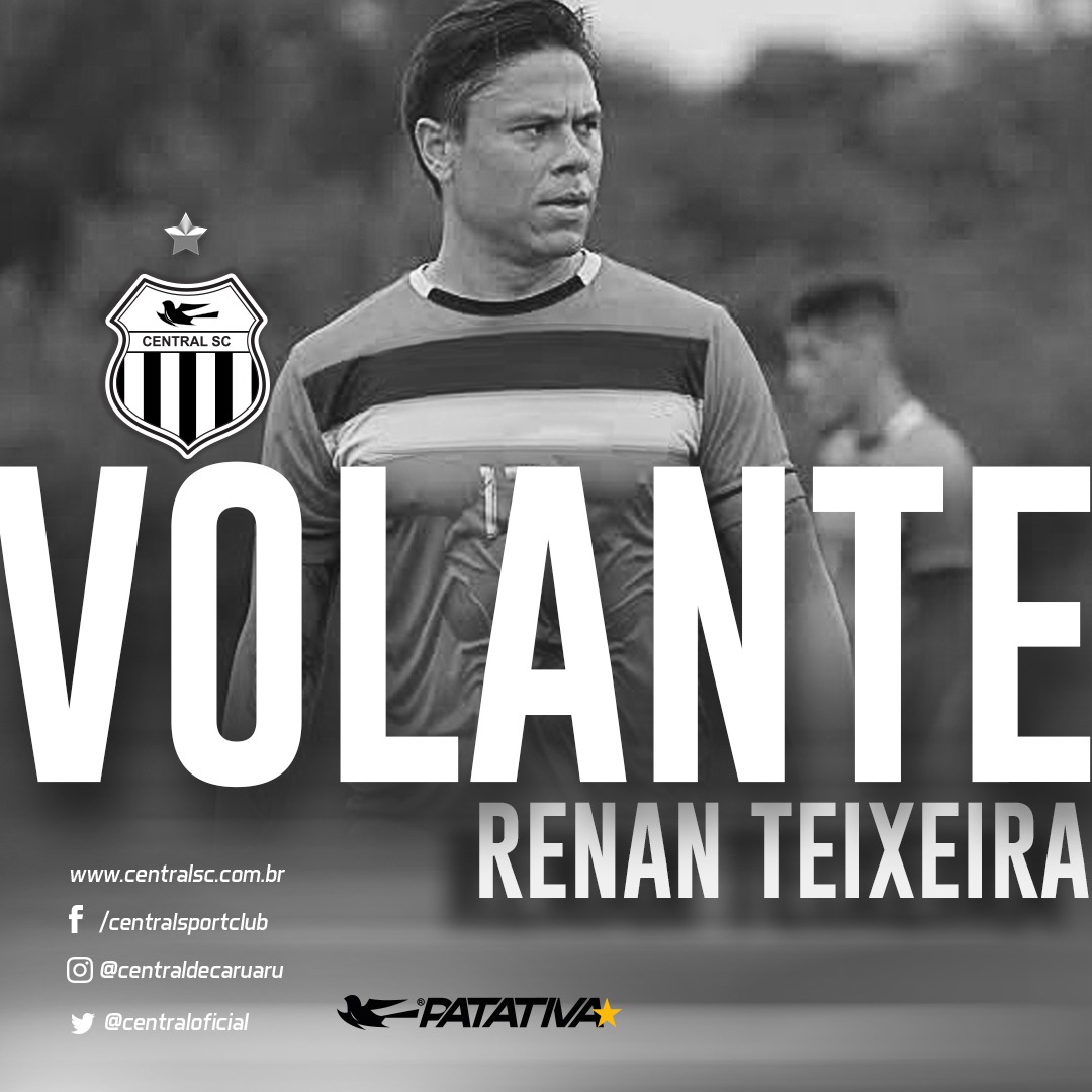 A 17° contratação do Central Sport Club para a temporada 2019 é o experiente volante Renan Teixeira da Silva, o Renan Teixeira, de 33 anos, natural de Caieiras/SP.