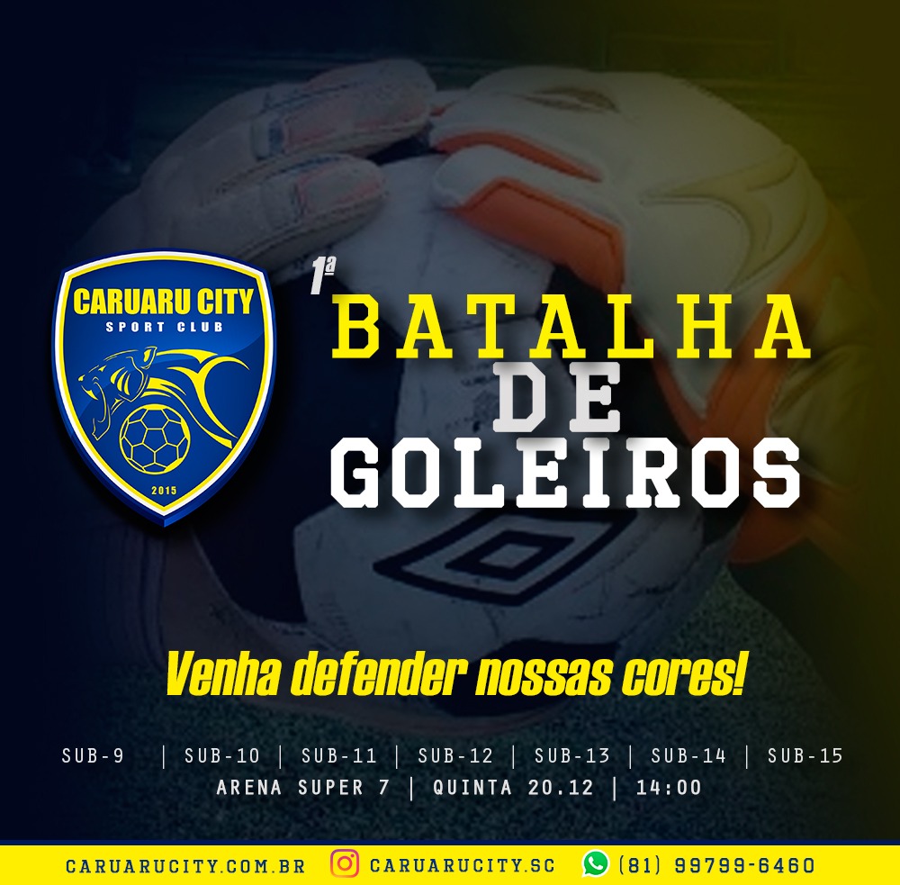 O Caruaru City promove a ‘1ª Batalha de Goleiros’ de futebol infantil. O objetivo é recrutar goleiros dos 8 aos 15 anos de idade que moram em Caruaru e região para integrar as categorias de formação do clube.