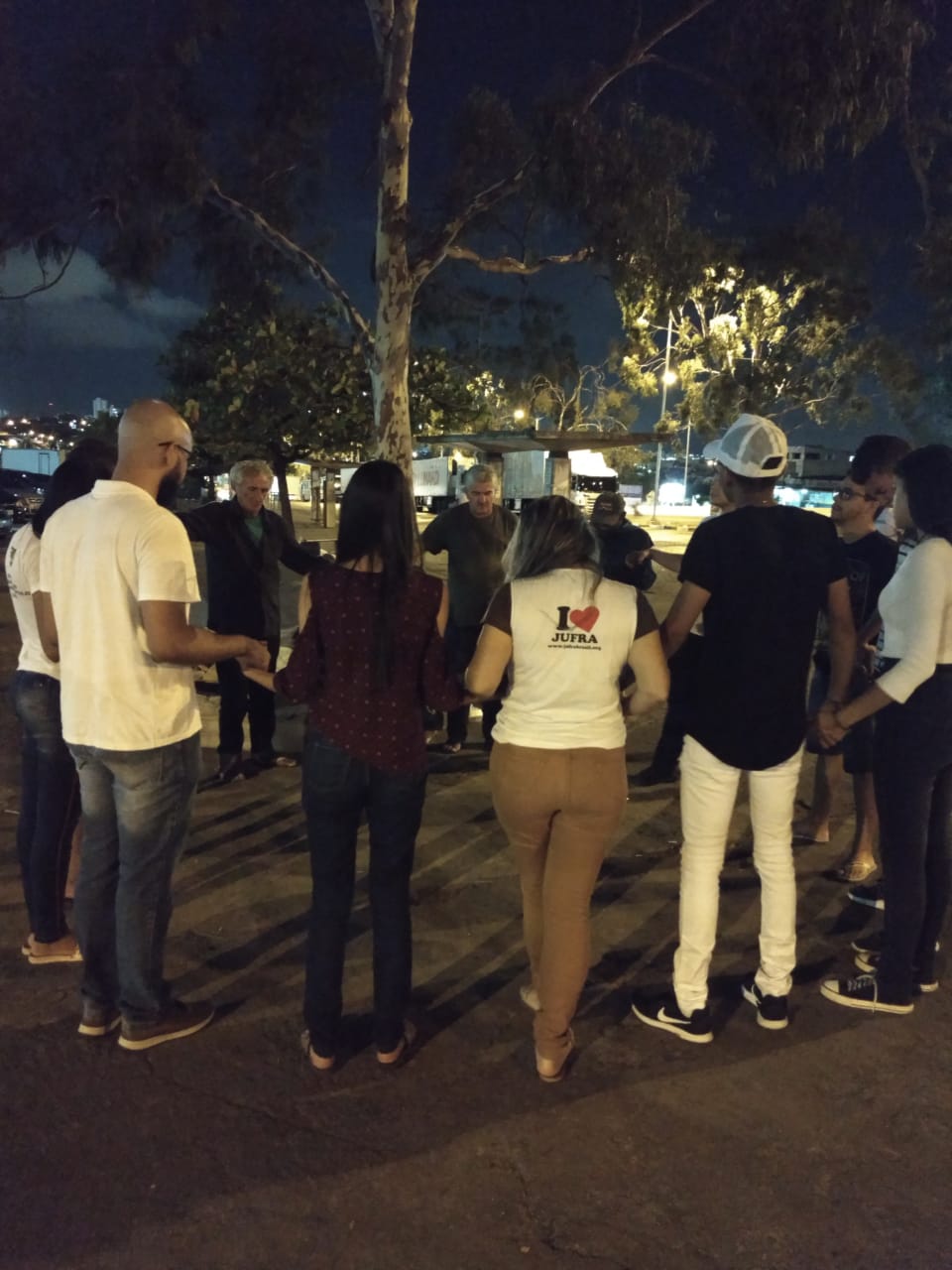 Esses jovens pertencem a um grupo chamado de Juventude Franciscana (JUFRA). Eles passaram pelo terminal rodoviário,