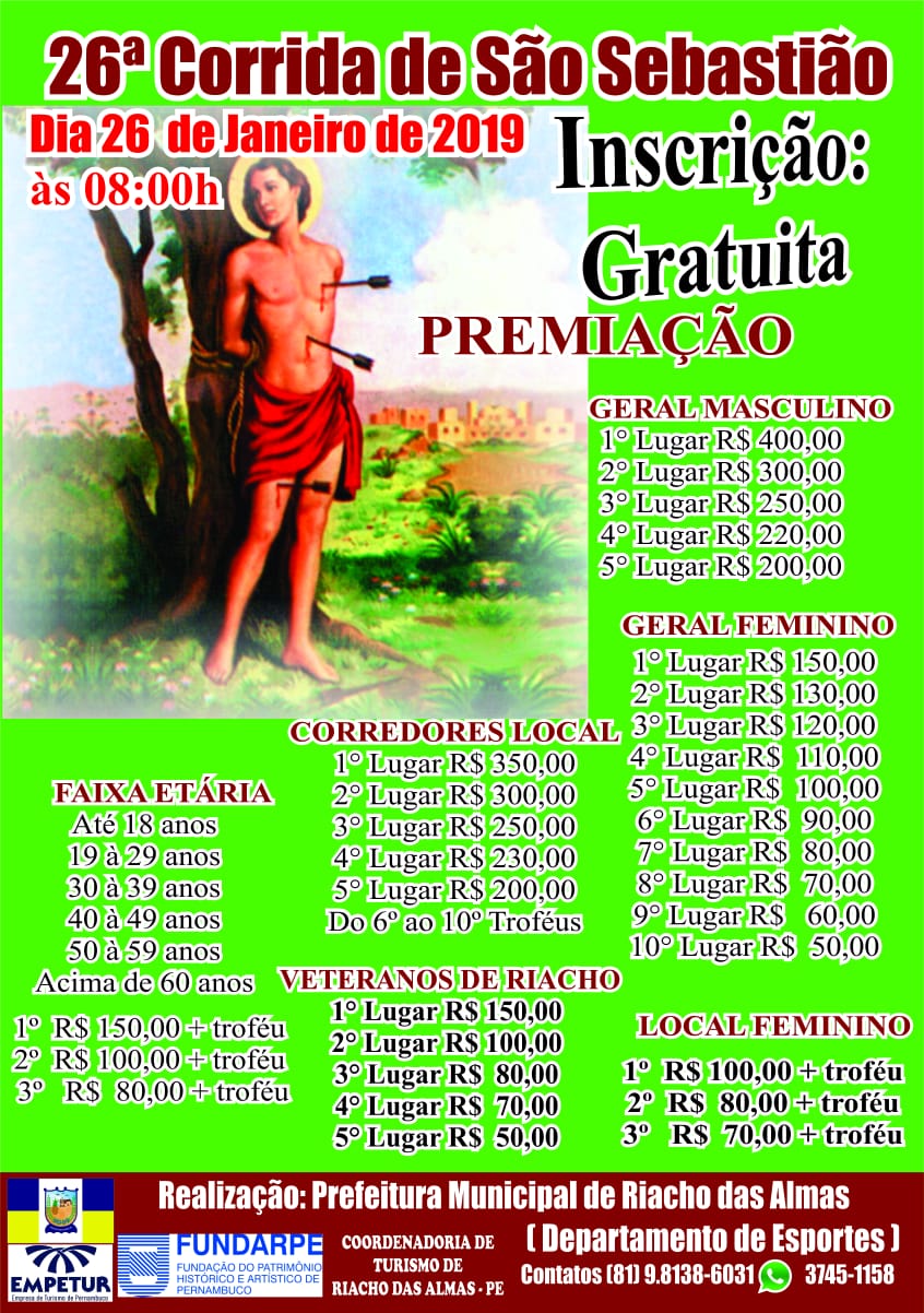 promover no dia 26 de janeiro a 26ª edição da Corrida de São Sebastião. As