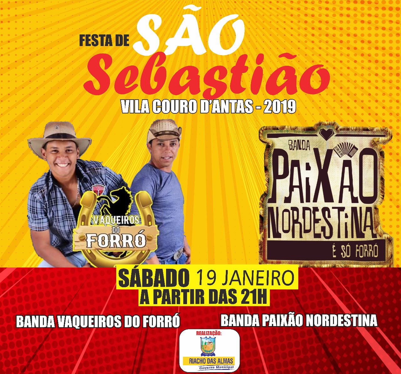 A Prefeitura de Riacho das Almas confirmou as atrações que vão se apresentar neste sábado (19) na Festa de São Sebastião na Vila de Couro D’Antas.