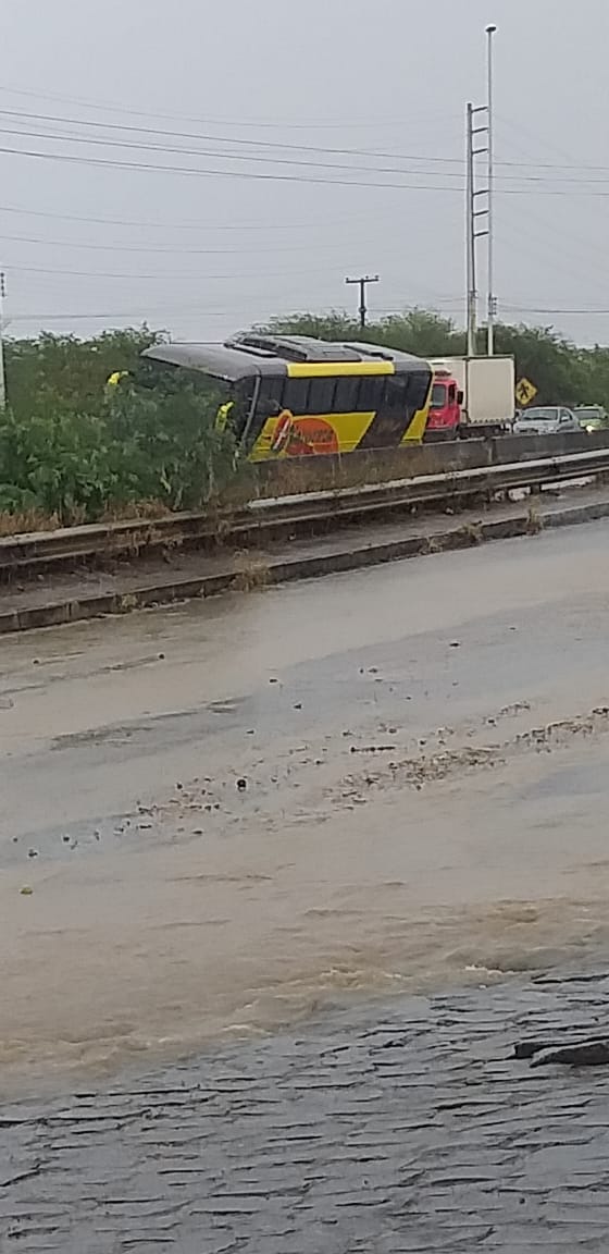 No final da manhã desta segunda-feira (28), começou a chover em Caruaru, provocando alegamentos em alguns pontos da cidade e acidentes na BR-232, nas proximidades do bairro Agamenon Magalhães. O motorista de um carro perdeu o controle da direção após aquaplanar e capotou, já um ônibus tombou.