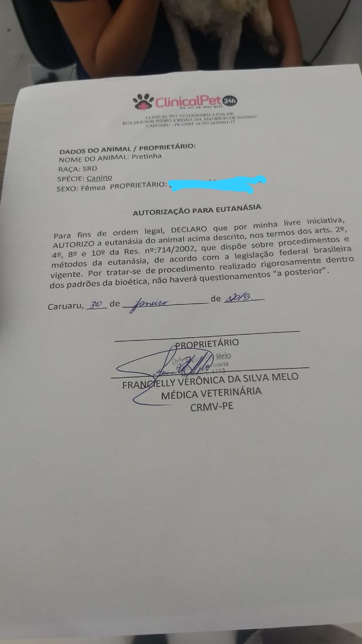 Existe a suspeita que a cadela, chamada pelo nome de Pretinha, estava com Leishmaniose e por isso será sacrificada.
